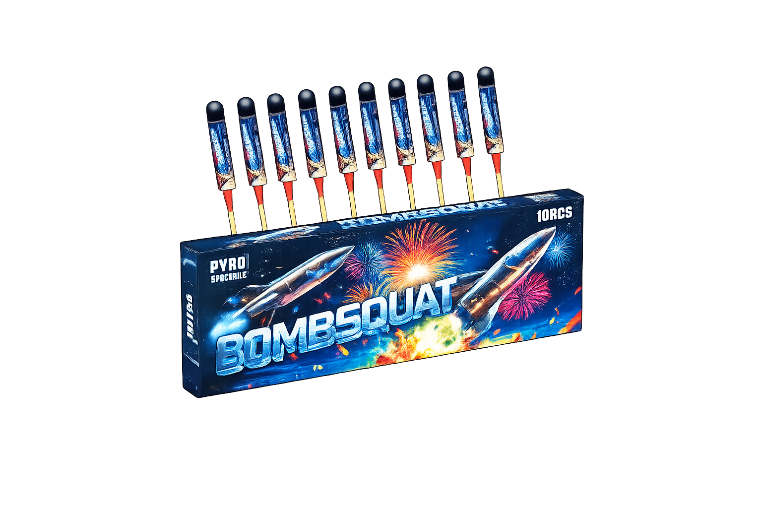 Bombsquat überzeugt mit 10 hochwertigen Shell-Raketen im starken Design. Präzise Aufstiege, saubere Zerleger und satte Farben machen dieses Set zu einer perfekten Wahl für Feuerwerksliebhaber.