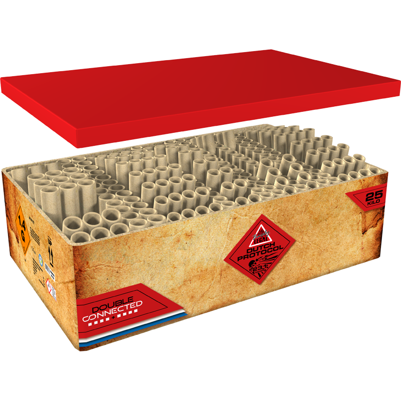Diese doppelte Compound-Batterie ist gefüllt mit niederländischer Pracht. Die Farben Rot, Weiß, Blau, Orange und Gold dominieren das Spektakel. Diese 25-kg-Box schießt in alle Richtungen – damit bist du definitiv der Boss der Nachbarschaft!