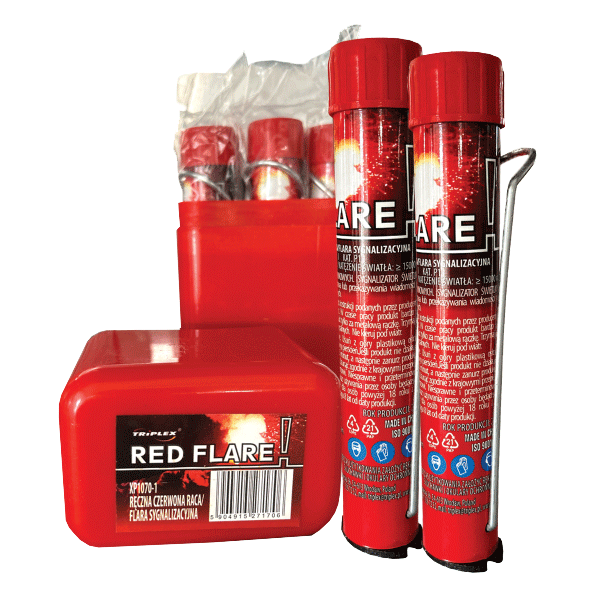 Rote Signalrakete mit sicherem Metallgriff, Seefackel für Notfälle.