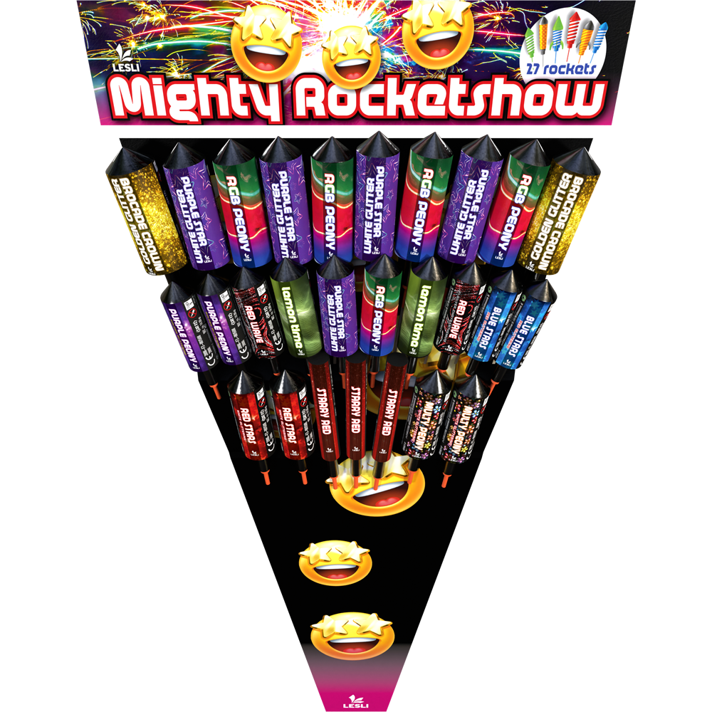 Raketensortiment mit ganzen 27 Raketen.