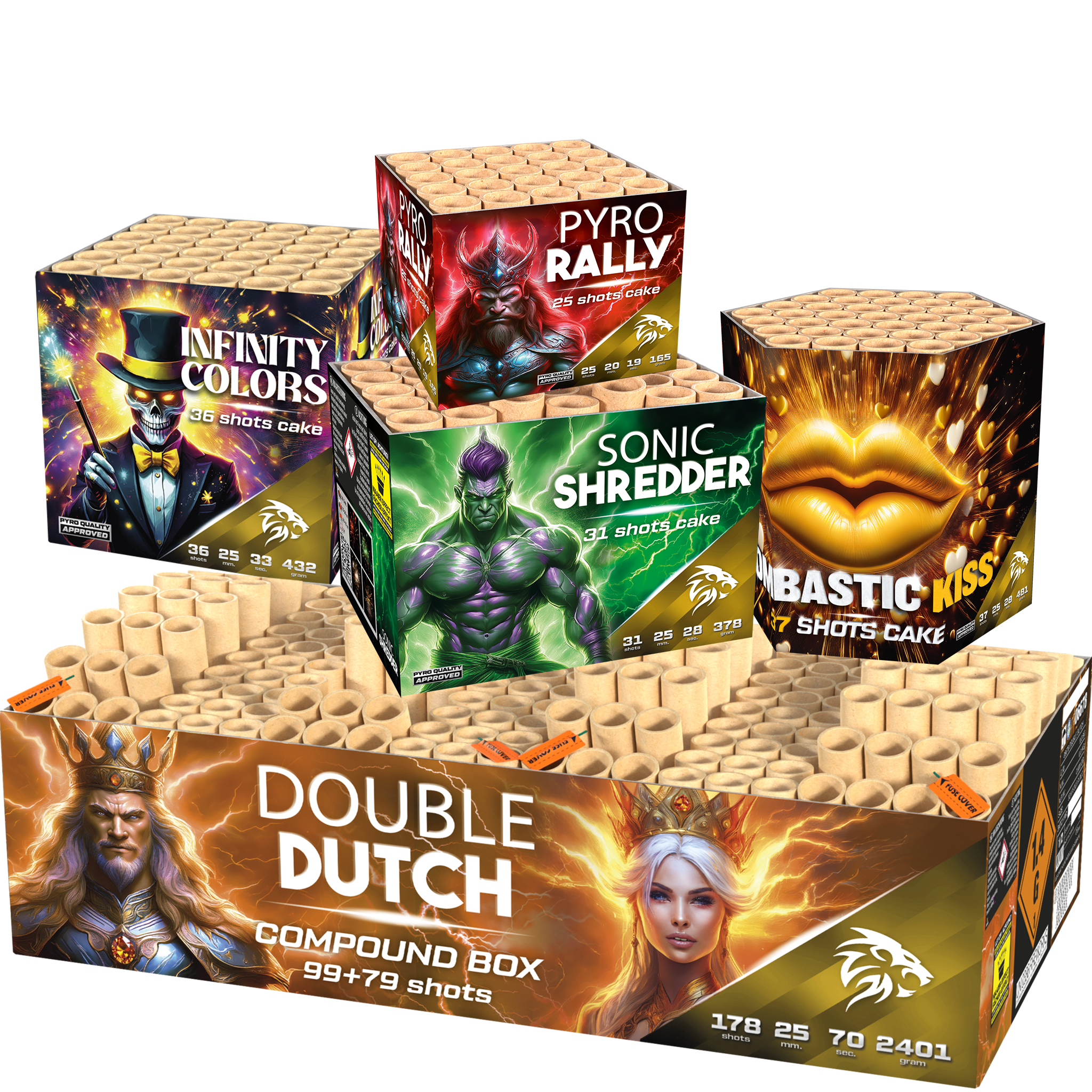 Combi Deal2!! Bestaande uit Double Dutch, Bombastic Kiss, Sonic Shredder, Infinity Colors en Pyro Rally.