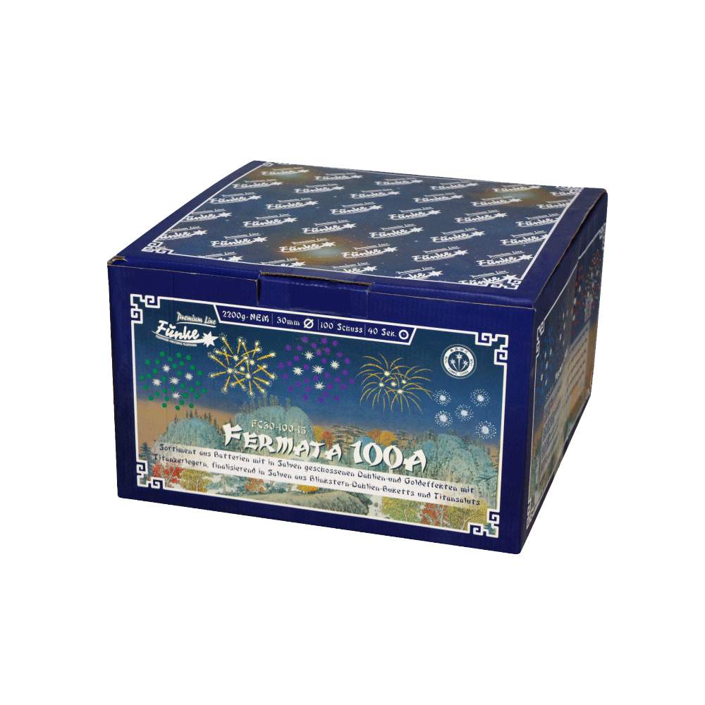Assortiment batterijen met dahlia- en goudeffecten afgevuurd in uitbarstingen van 5 met titanium lobben, eindigend in uitbarstingen van 10 met knipperende ster dahlia boeketten en titanium salutes