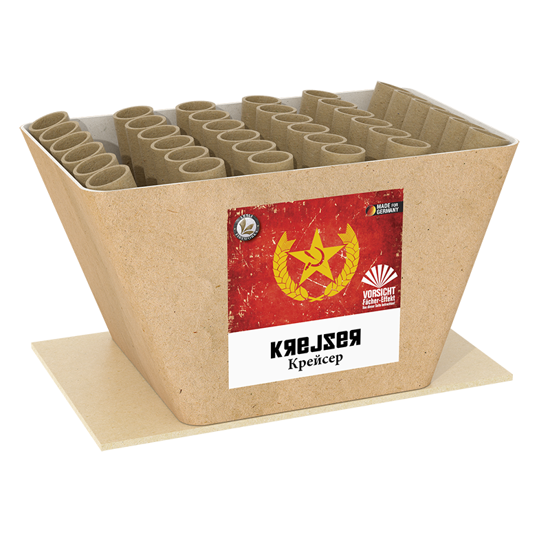 Extreem brede crackling batterij met 36 schoten in waaiervorm.
