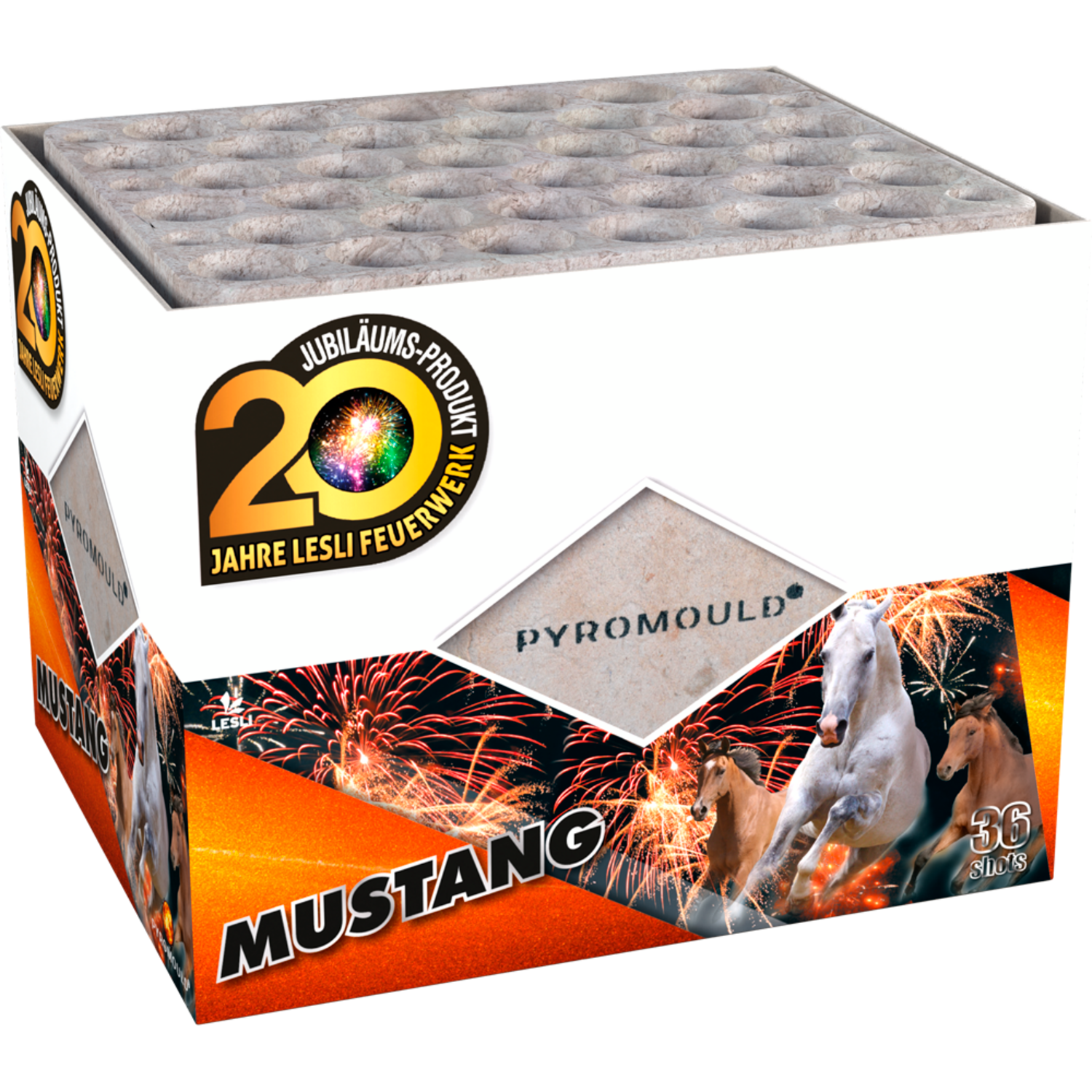 Hij is terug! De Mustang begint rustig met knetterende kokosnooteffecten. Meteen daarna gaat het los. Uit twee salvo's worden kleurrijke effecten op een goede hoogte de lucht in geslingerd. Prachtige oranje finale. 36 schoten.